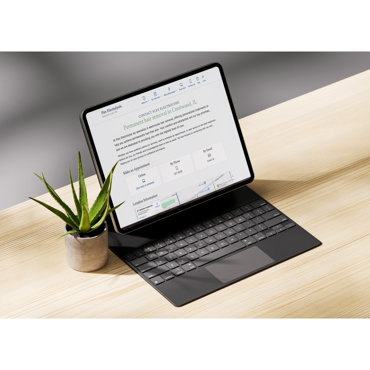 A clean, attractive, browser-friendly, search engine-aware site with at least 13 pages of content geared to the electrolysis consumer including: